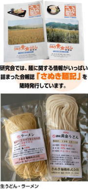 「さぬき黄金うどん研究会」は、私たちのユーザー様は全国各地にいらっしゃいますので、そのユーザー様から各地の事業状況や小麦粉の情報、麺・出汁の情報など、旬の情報や時代と共に変化している内容を会員に会報として提供しています。会員の皆様もさらなる夢ややる気を出していただいています。また、今ある機械を利用して、製造することのできる製品を提供できるアイデアや手法も共に考えることができる場です。 最近の話題としては、イギリス・フランス・モスクワなどでも展開されています。モスクワでは3店舗目ができるところで、60店舗を目指している経営者もいらっしゃいます。 また、生麺でも常温で2〜3ヵ月も日持ちがする、「さぬきうどん」の独特な味が保たれる「黄金(こがね)うどん」という新製品は、更なる高度な技術を使ったものです。これは、「さぬき黄金うどん研究会」の中から提案や意見をいただいて生まれた製品です。業界では画期的な商品で、びっくりされるのではないでしょうか。