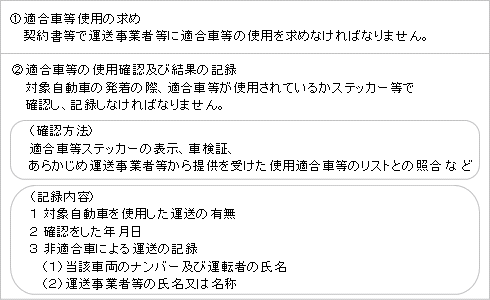 (3)府域の荷主等、旅行業者などにも義務があります。貨物又は旅客の運送を委託する場合、物品等を購入して運送させる場合は以下の義務があります。